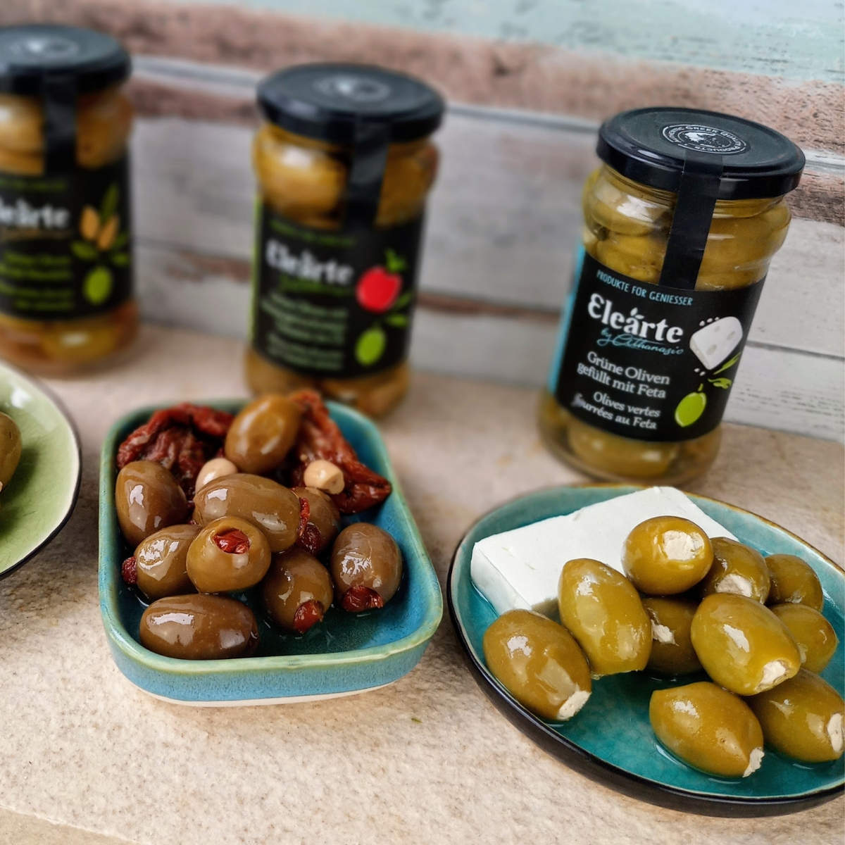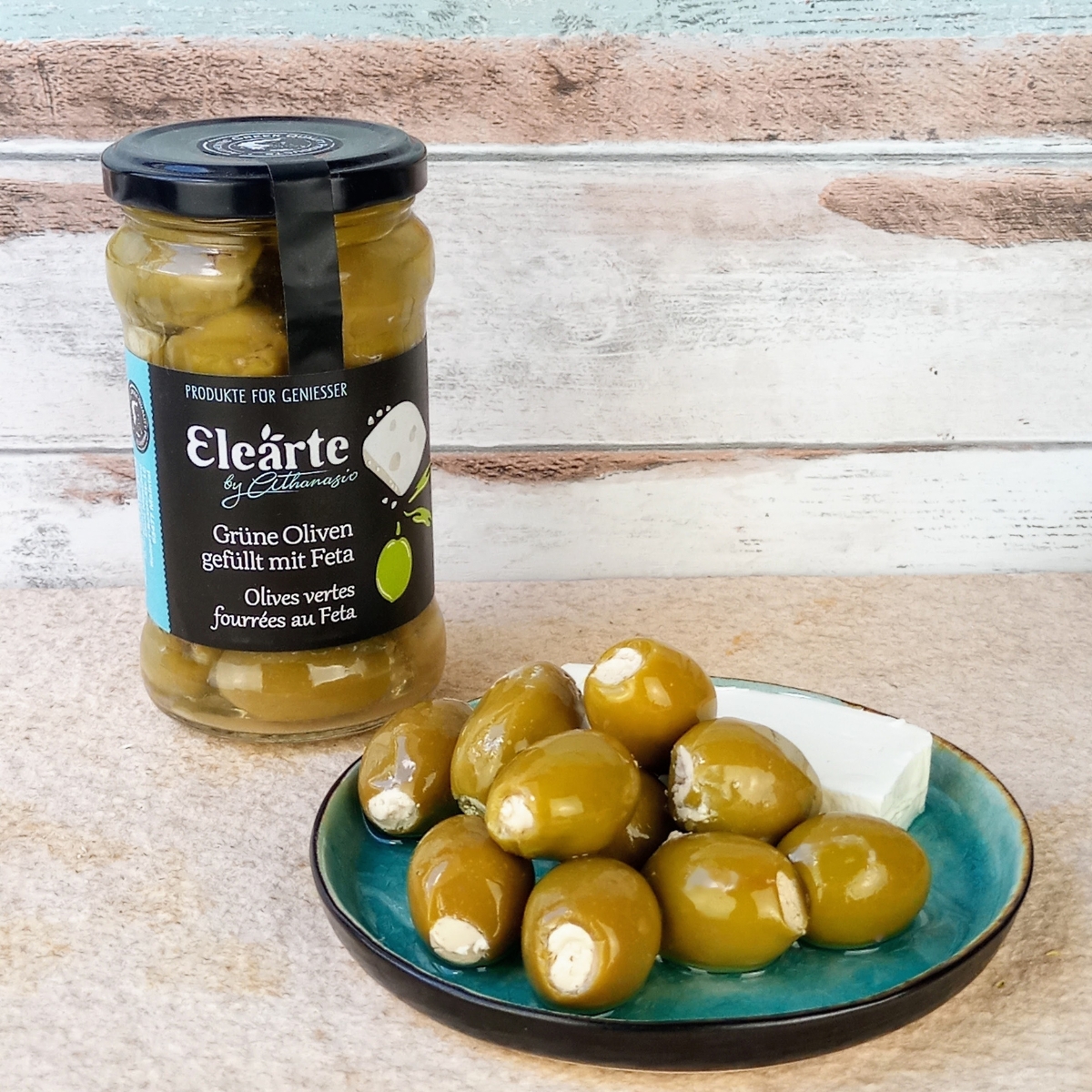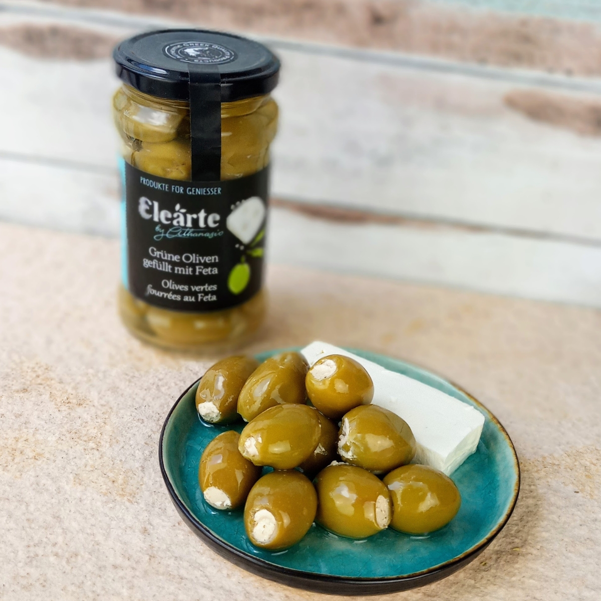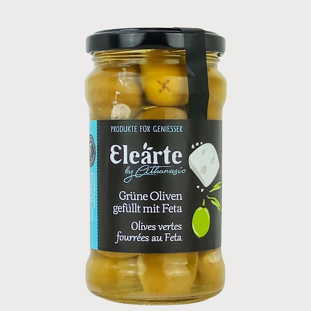 Die Griechischen grünen Oliven mit Feta von Elearte by Athanasio vereinen das Beste, was Griechenland zu bieten hat: kräftige Chalkidiki-Oliven und zwei traditionelle Käsesorten – würziger Feta und zarter Mizithra. Von Hand geerntet und liebevoll gefüllt, verbinden sich hier cremige Textur und mediterrane Frische zu einem unvergleichlichen Geschmackserlebnis. Harmonisch, authentisch und typisch griechisch.