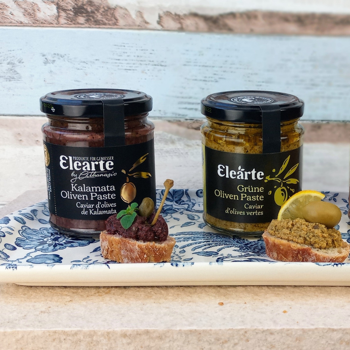 Die Grüne Oliven Paste von Elearte by Athanasio wird aus natürlich gereiften, handverlesenen griechischen Oliven hergestellt, die mit Kapern, feinen Kräutern und Meersalz zu einer harmonischen Creme verarbeitet werden.