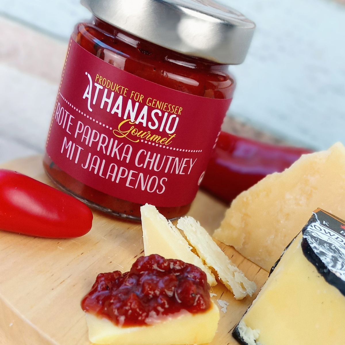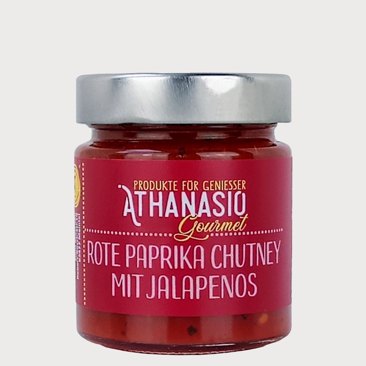 Das Rote Paprika Chutney mit Jalapeños von ATHANASIO Gourmet ist ein Fest für die Sinne. Geröstete süß gereifte rote Spitz- Paprika entfalten ihr volles Aroma, während feine Jalapeños einen pikanten Akzent setzen. Balsamico-Essig verleiht Tiefe, Gewürze sorgen für eine samtige Balance – zusammen entsteht eine harmonische Verbindung von Süße und Schärfe, die griechische Leidenschaft spürbar macht. Dieses Chutney ist die perfekte Begleitung zu Käse-Platte, gegrilltem Gemüse, Kartoffeln oder Rind und Wild- Gerichte, verleiht jedem Gericht einen Hauch von mediterraner Sonne. Ein Glas voller Farbe, Frucht, Duft und Lebendigkeit.